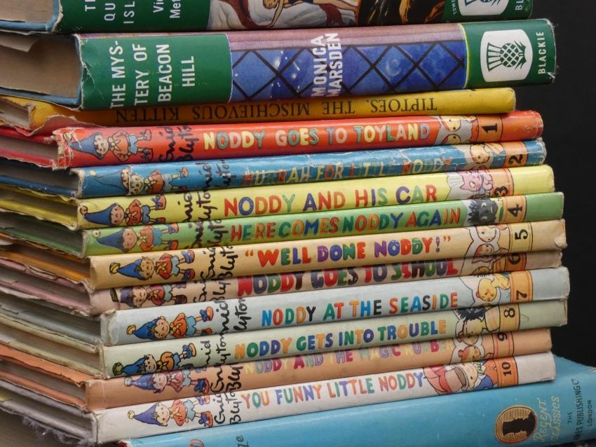 A collection of forty vintage books to include children's adventure stories, a selection of 50's hardback Noddy books with dust covers, 1-10, a complete set of 1940's engineering text books, and book from the 1960's 'How Things Work'. L.23 W.16cm