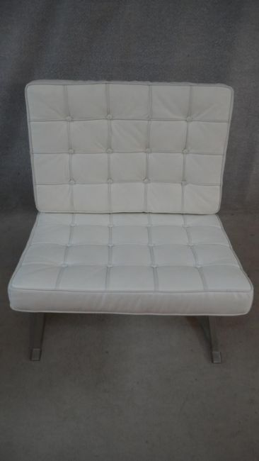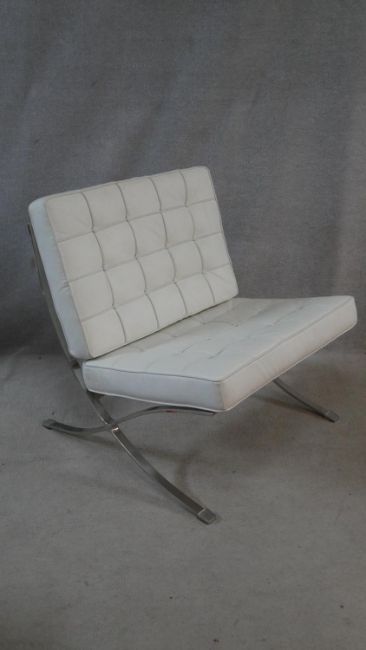 A Barcelona style easy chair in faux leather buttoned upholstery. H.39cm