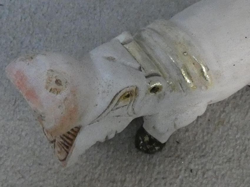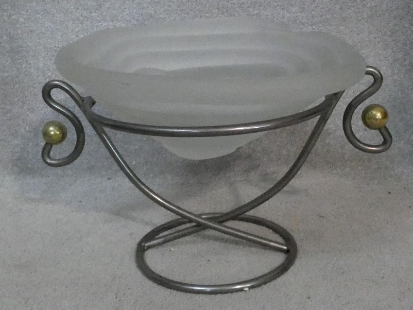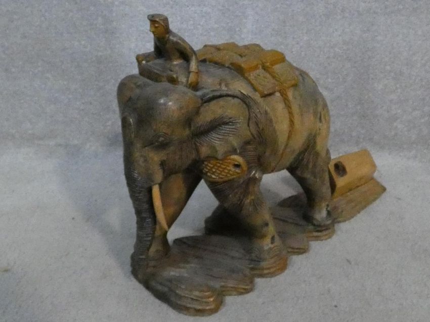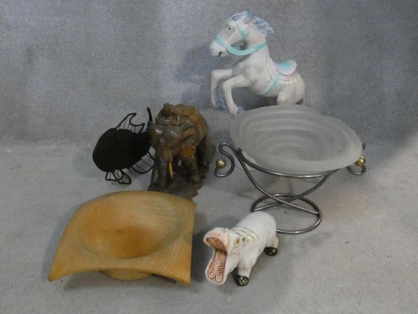 A miscellaneous collection of six items to inlclude a glass comport, turned bowl and various carved animals etc. H.51cm (tallest)