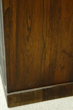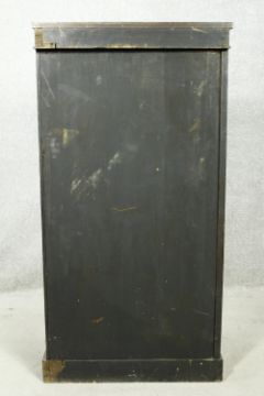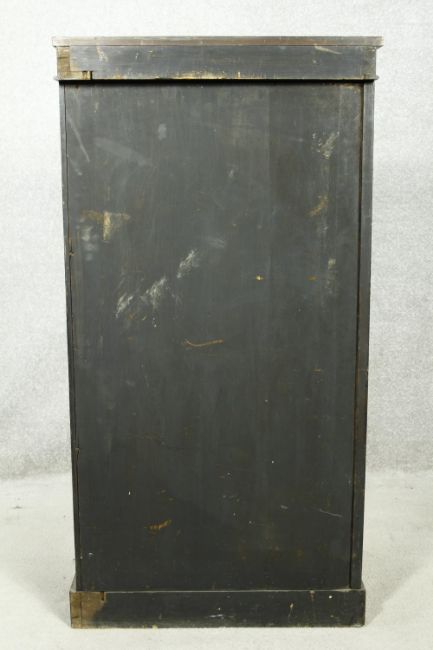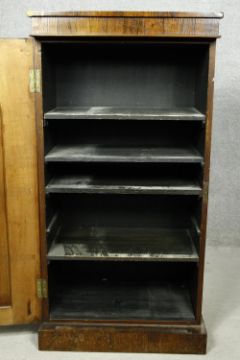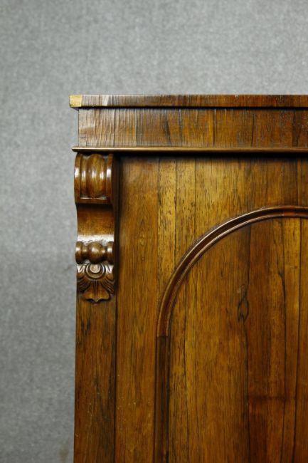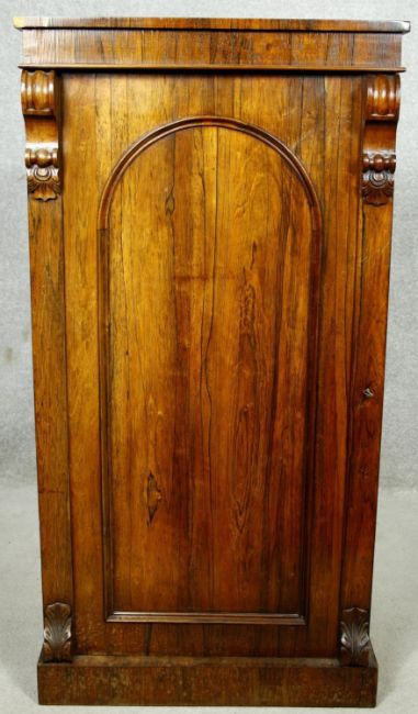 An early Victorian rosewood pier cabinet with arched panel door enclosing shelves on plinth base. H.112 W.58 D.39cm