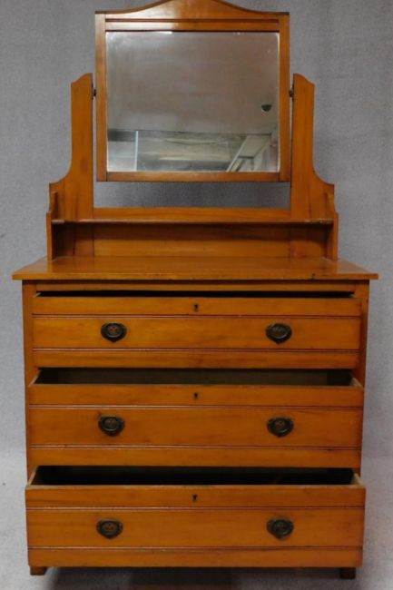 A Victorian satin walnut dressing chest with swing mirror above three long drawers. H.160 W.90 D.50cm