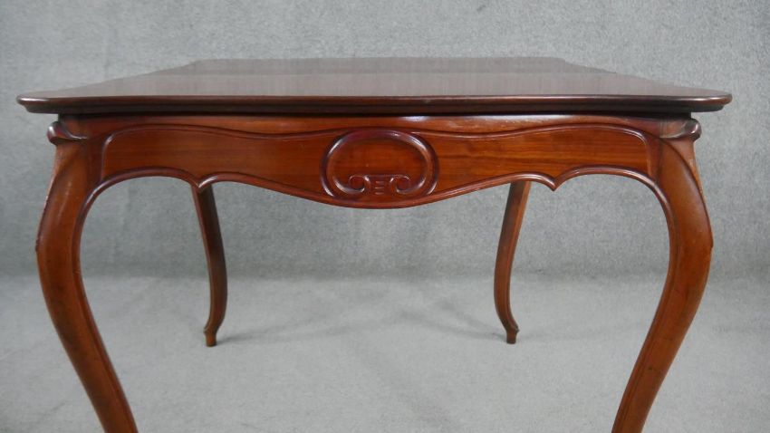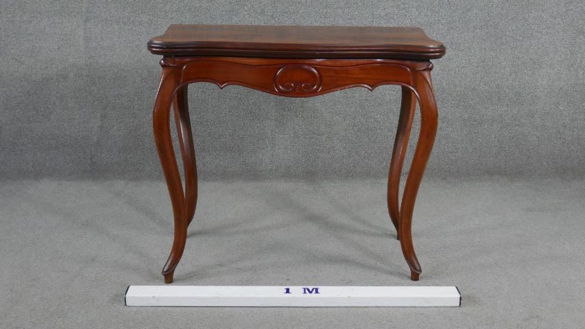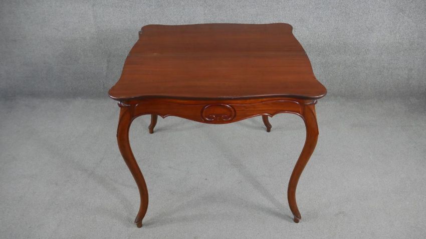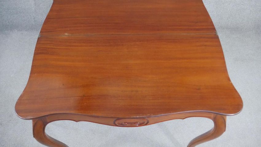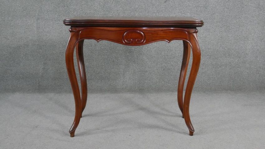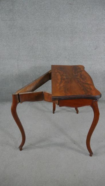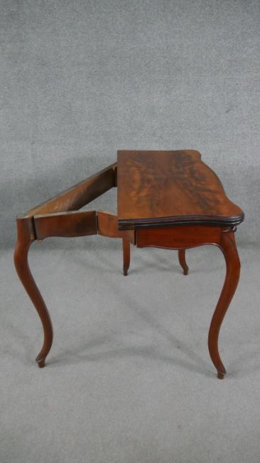 A late 19th century Continental walnut tea table with fold over top on hinged gateleg action on cabriole supports. H.76 W.86 D.44cm (D.87cm extended)