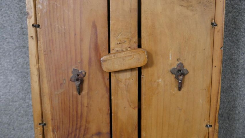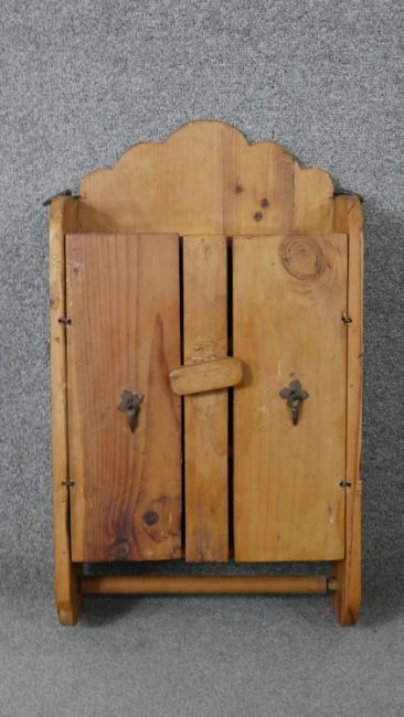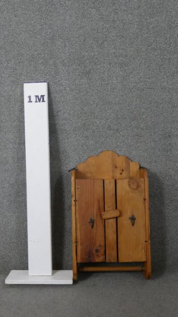 A rustic pine wall hanging cabinet. H.65 W.37 D.14cm