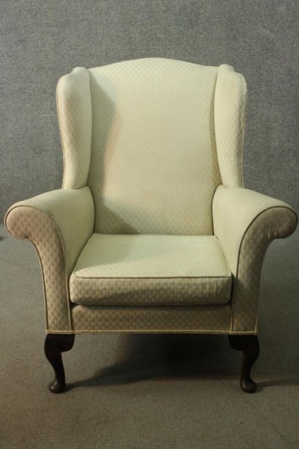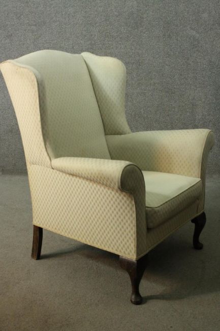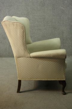 Armchair, Georgian style wingback on mahogany cabriole supports.