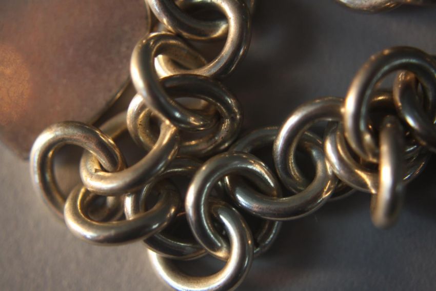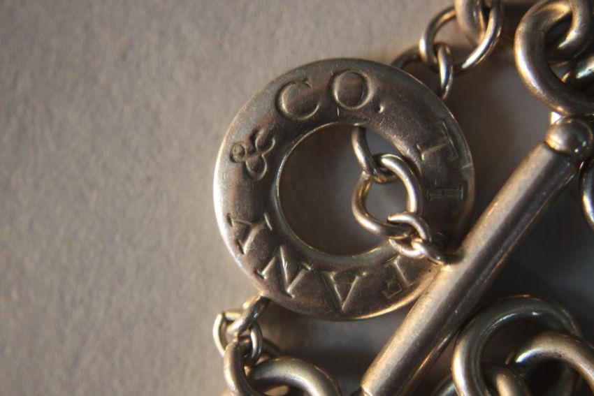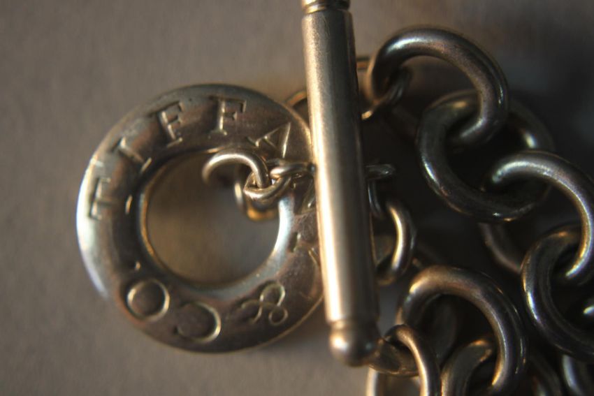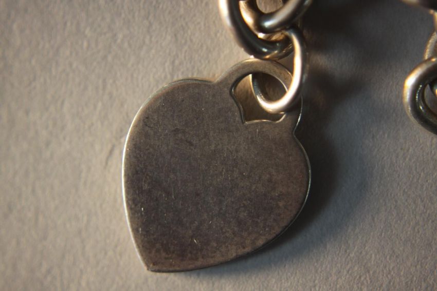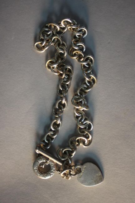 A Tiffany silver chain link necklace with heart pendant and T-bar, stamped Tiffany & Co.