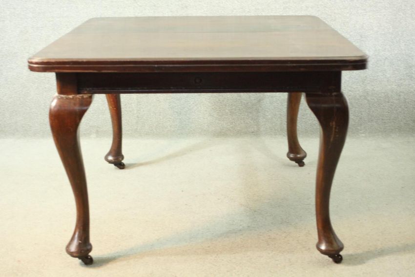 Dining table, C.1900 mahogany extending. (With winding handle but no leaf). H.71 W.125 D.105cm.