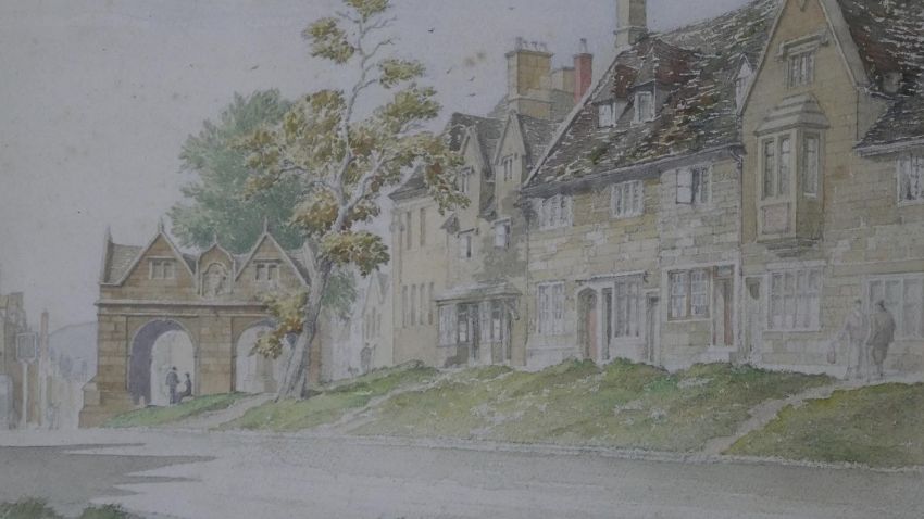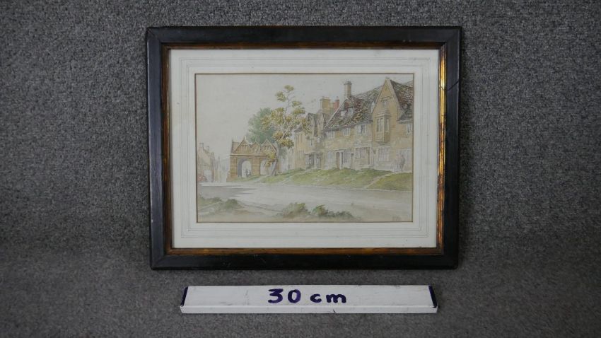 Jasper Salwey (19th/20th century) A framed and glazed watercolour of a country town street scene. Signed by artist. H.31 W.40cm