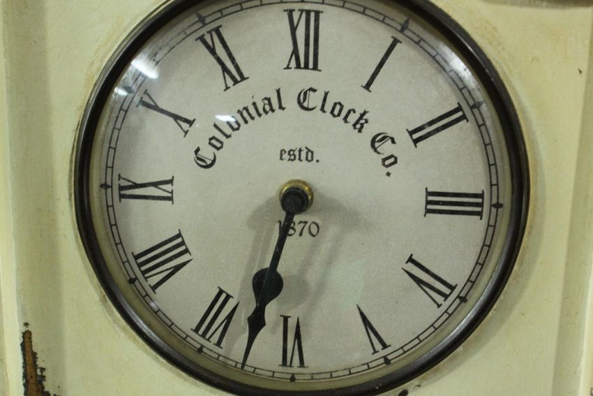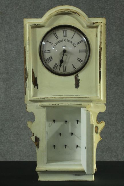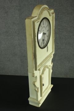 A contemporary painted American style wall clock. H.56 W.26 D.6 cm.