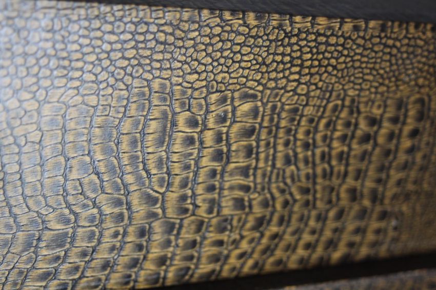 A collection of six vintage faux crocodile skin desk top filing boxes. H.12 W.17 D.39cm.