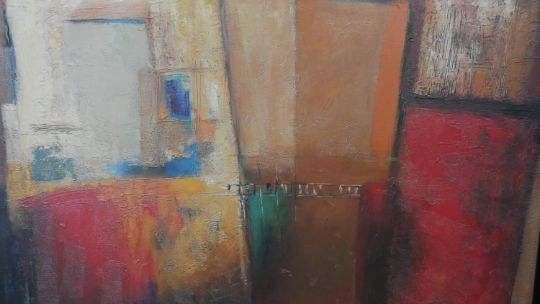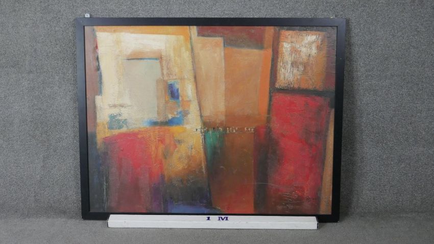Michele Patrizio (1955-) A large framed print of an abstract oil on canvas. Printed signature. H.98 W.125cm