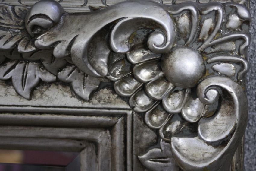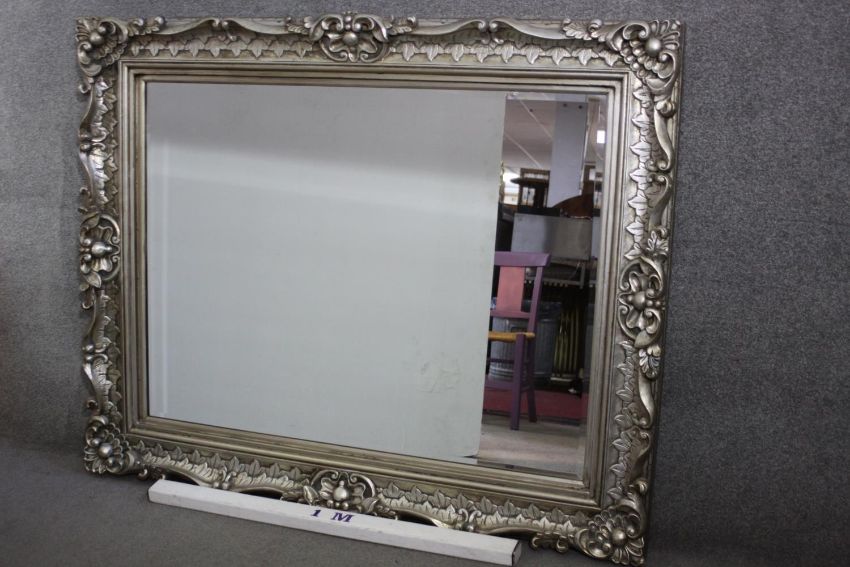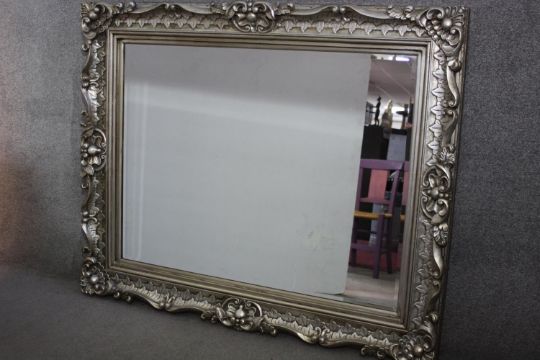 Wall mirror, contemporary Rococo style with bevelled plate. H.126 W.154cm.