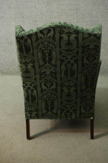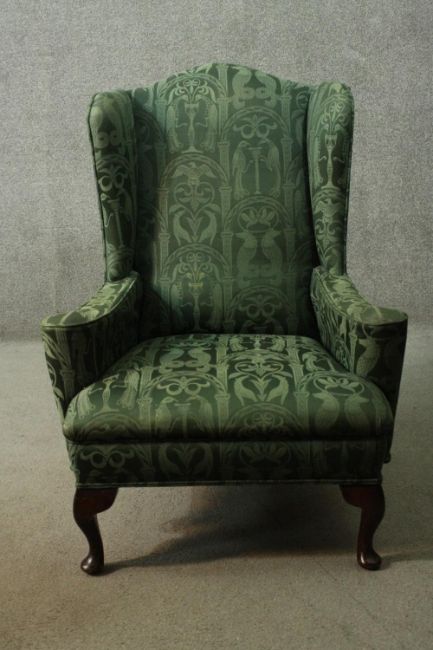 Armchair, Georgian style wingback on mahogany cabriole supports.