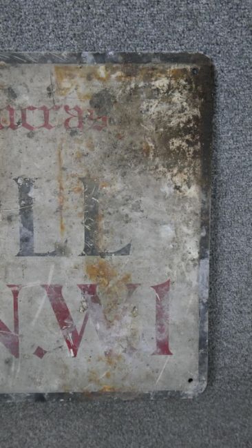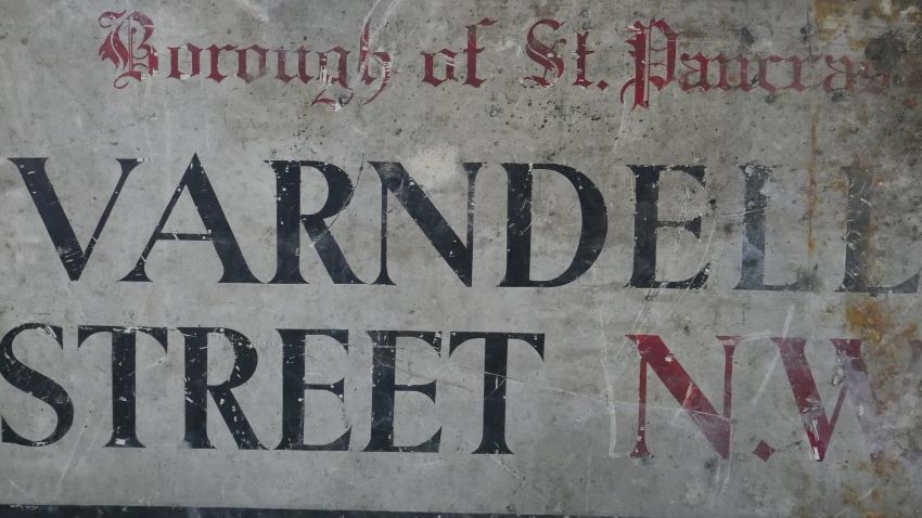 A vintage metal street sign, Varndell Street. Red and black lettering. H.46 W.92 cm