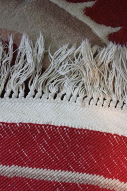 A Chinese woollen rug with chasing dragons on a burgundy ground. Dia. 160cm.