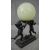 A bronze effect classical design table lamp of two cherubs holding a pale green marbled glass globe shade. H.30 W.20cm