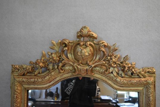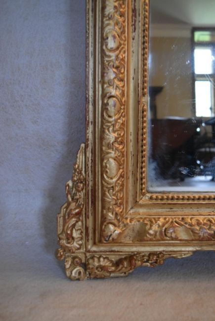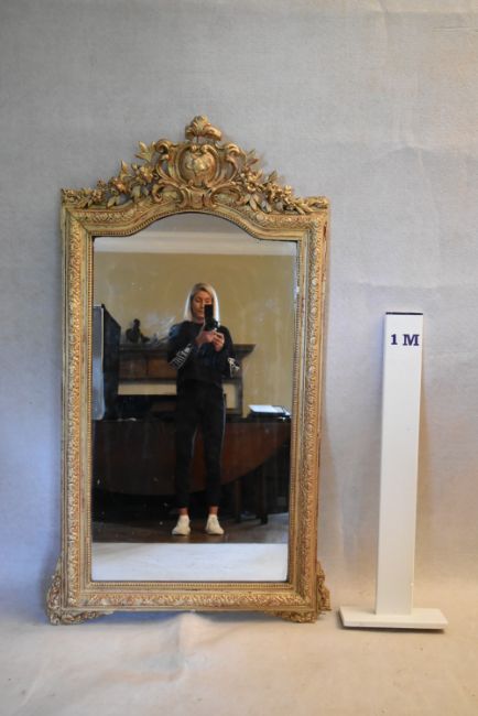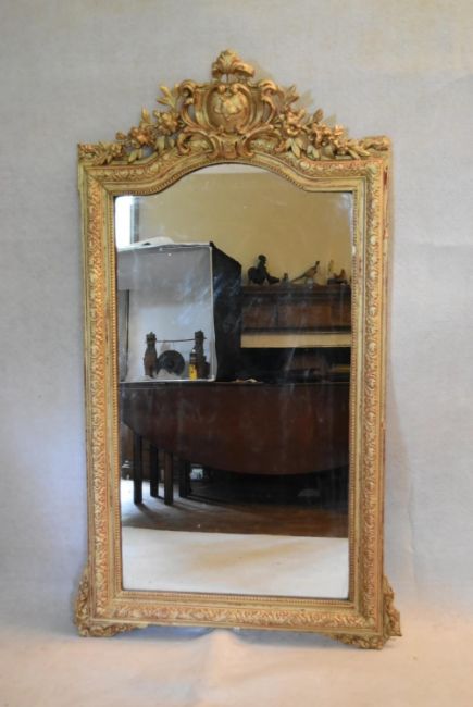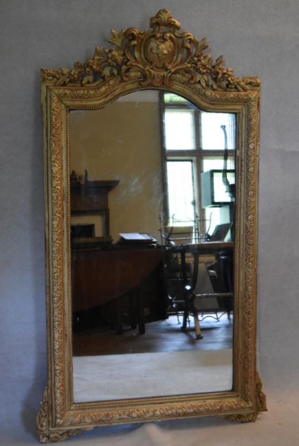 A 19th century overmantel or pier mirror in a gold painted foliate gesso frame. H.153 W.92cm