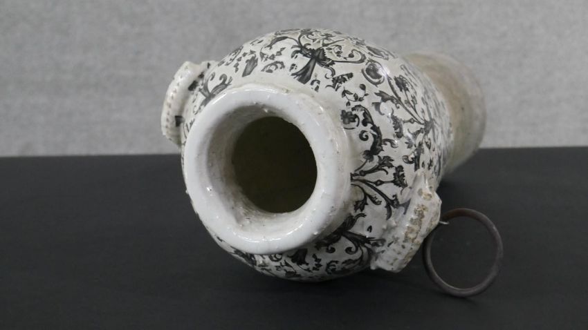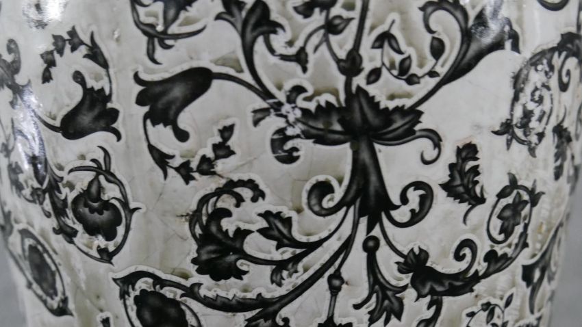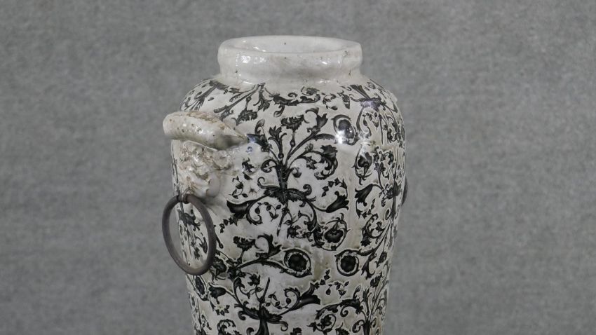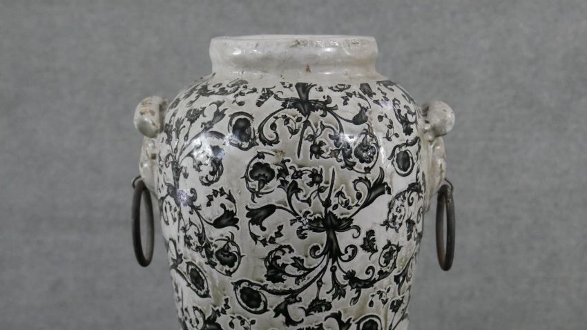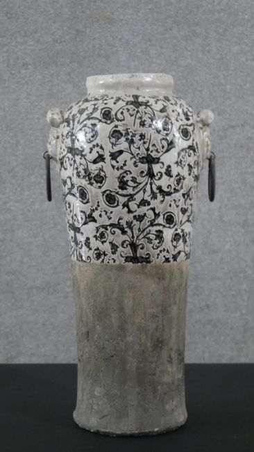 An Islamic style floral and foliate pattern twin handled ceramic vase. H.50 W.25cm