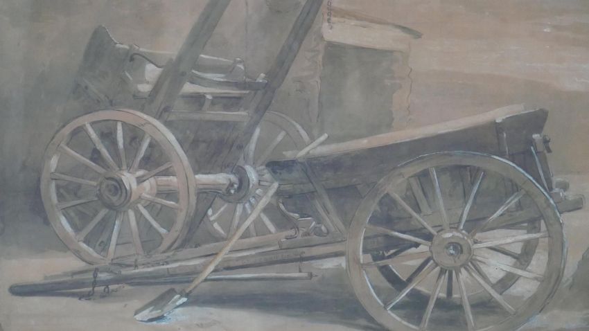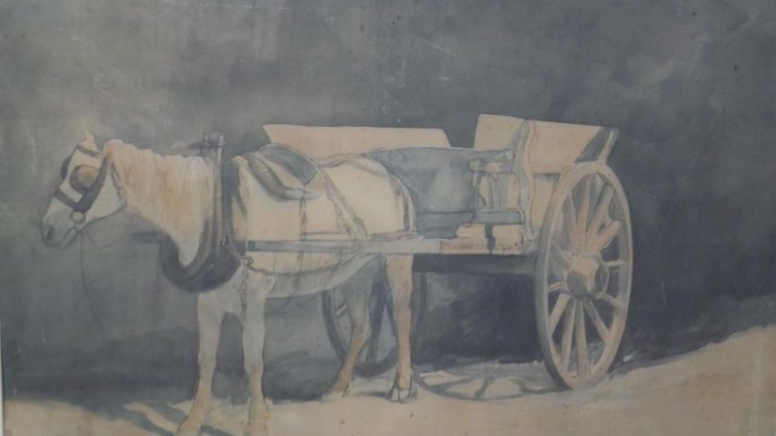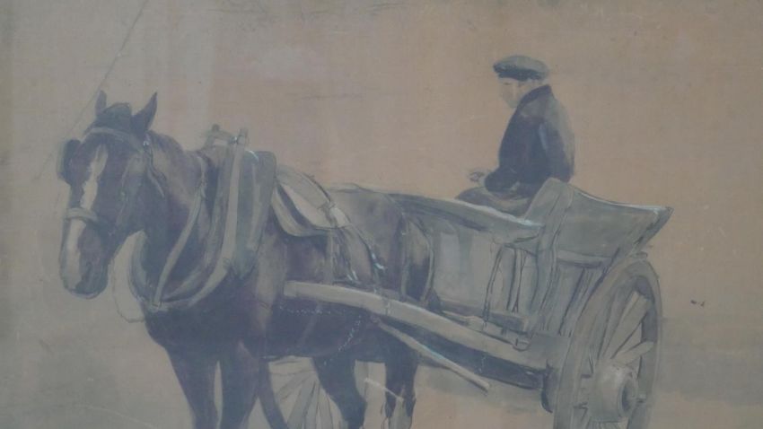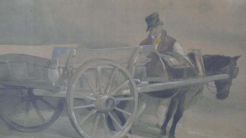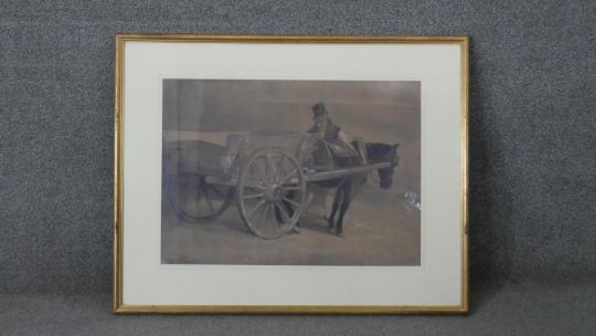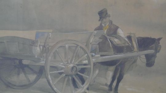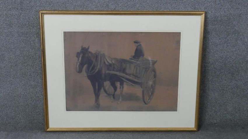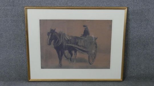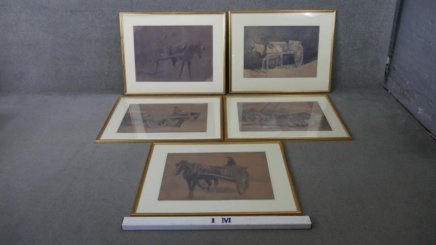 A set of five framed and glazed Dublin prints of watercolours of carts and horses. Dated in plate. H.75 W.94 cm