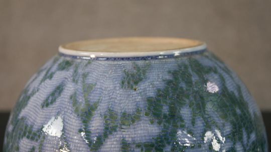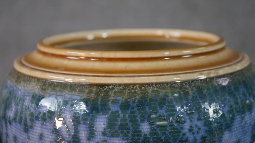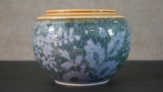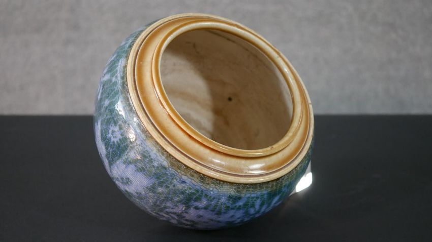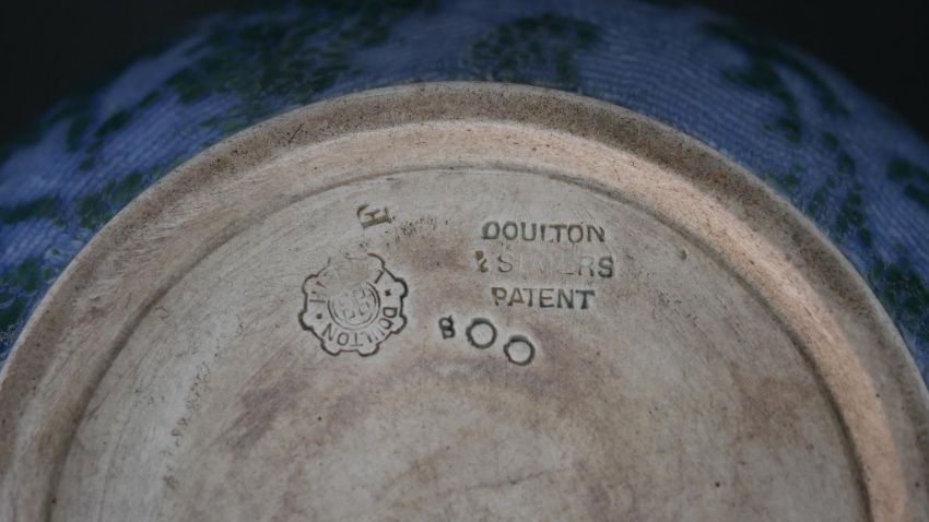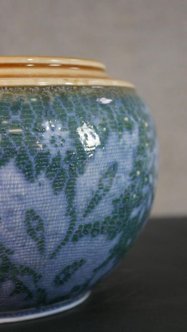 A early 20th century Doulton Lambeth glazed ceramic planter with stylised floral and foliate design. Impressed makers mark to the base. H.16 W.23cm