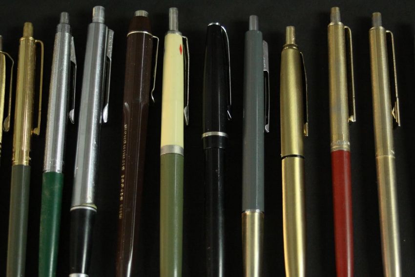 A collection of thirty eight vintage ballpoint pens. Various makers including Parker, Papermates and various designs and colours.