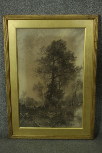 George Sheffield (b.1839 - 1892), a framed and glazed watercolour on paper of trees, signed and dated by artist and label verso. H.105 W.74cm.