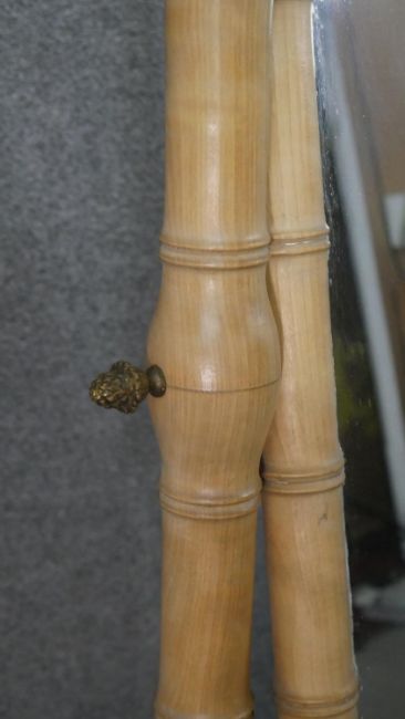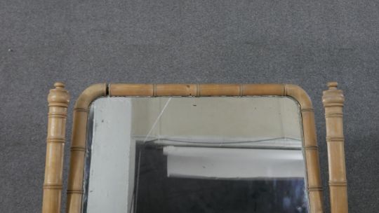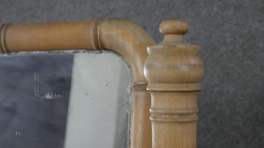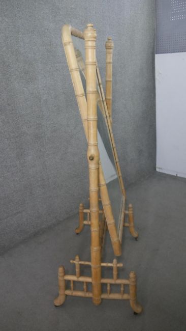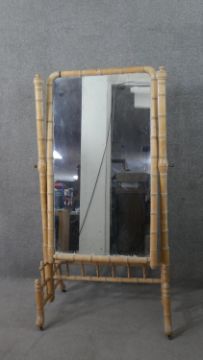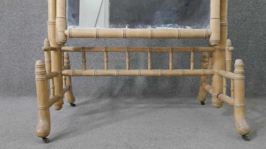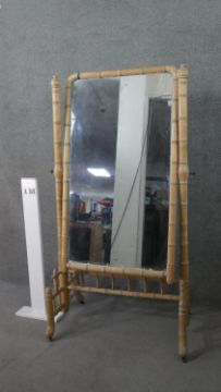 A late 19th century French carved beech faux bamboo cheval mirror, with a rectangular mirror plate, the frame and supports all carved to imitate bamboo. H.168 W.85 D.57cm