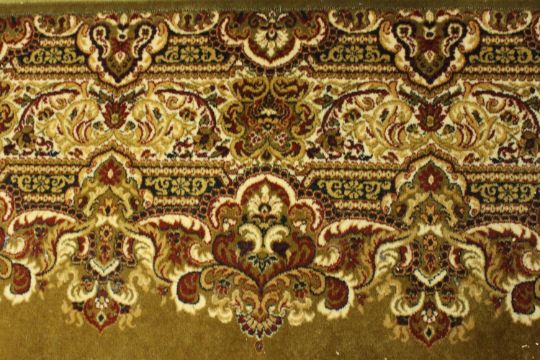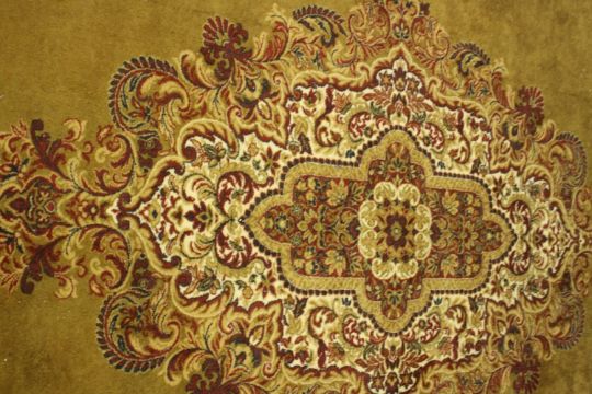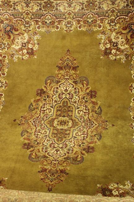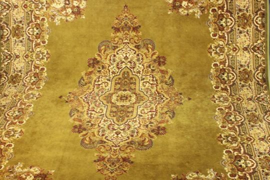 A gold ground Kirman motif woollen carpet. L.366 W.274cm.