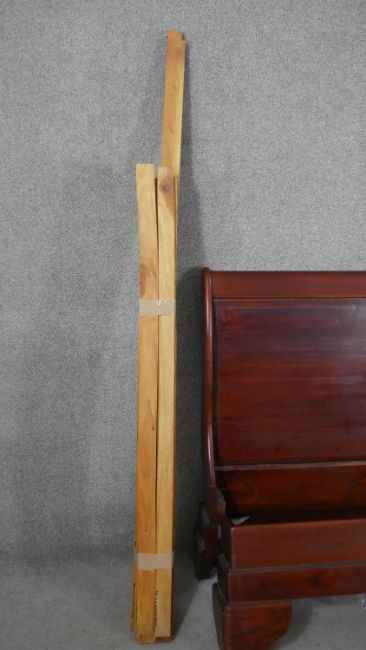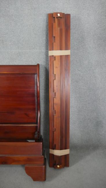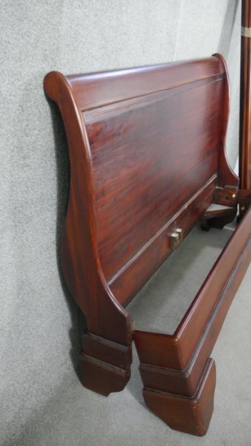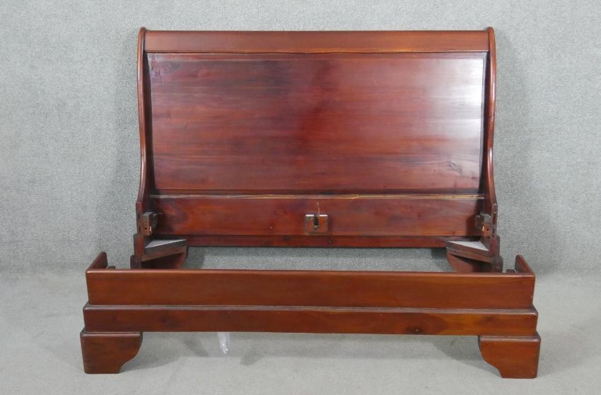 A French style king size hardwood sleigh bed, of typical form, on bracket feet Approx. H.117 W.160 D.210cm