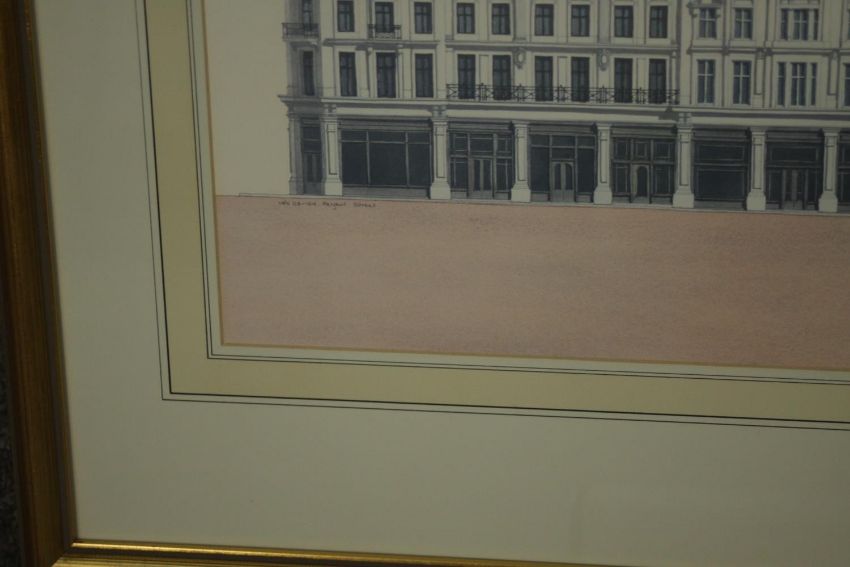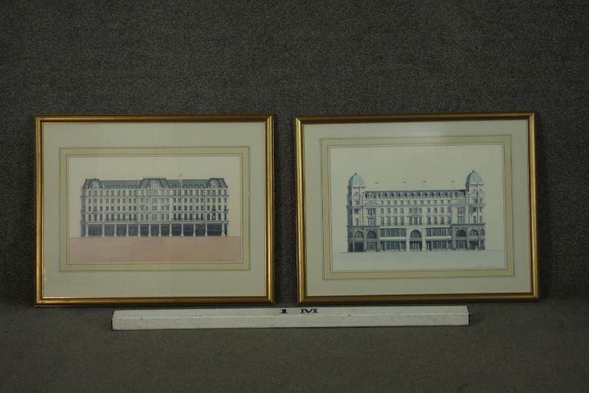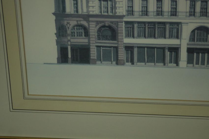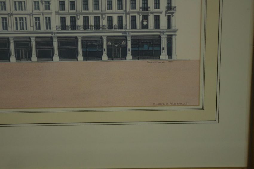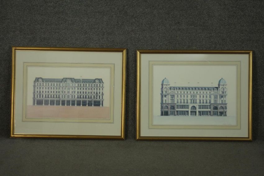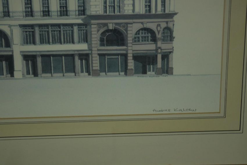 Andras Kaldor (Hungarian 1938-2022), 'Regent Street', 1989, signed lower right, and another, two architectural lithographs. H.56 W.90cm. (largest)