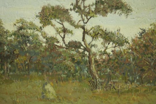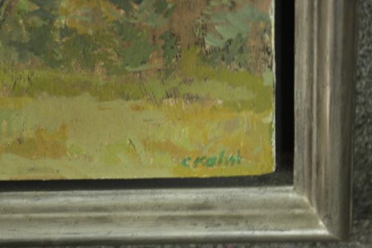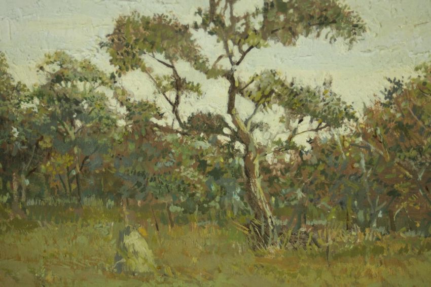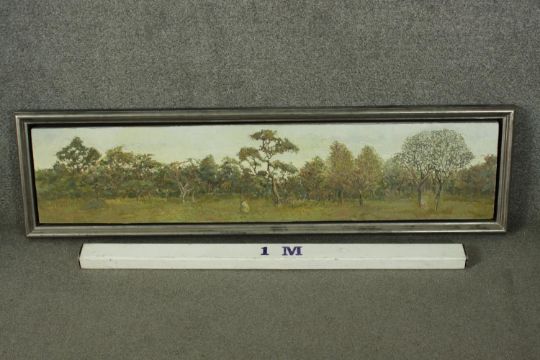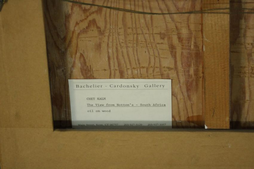 Chet Kalm (American 1925-2017), The View From Notton's - South Africa, oil on wood, signed lower right, gallery label verso. H.37 W.130cm.