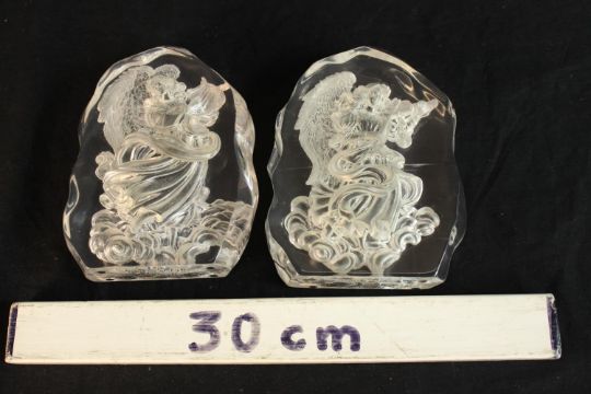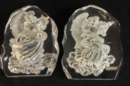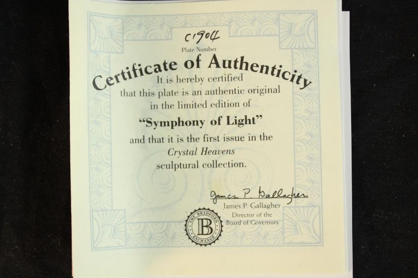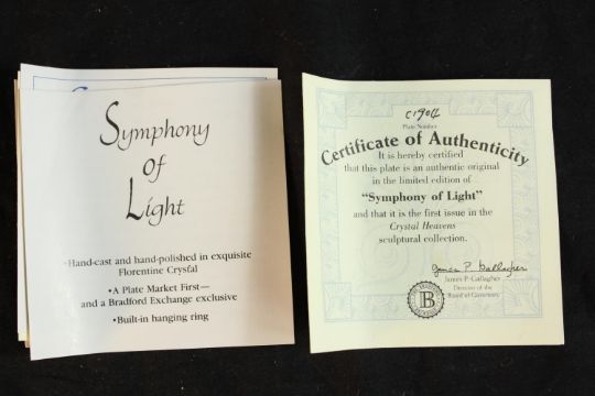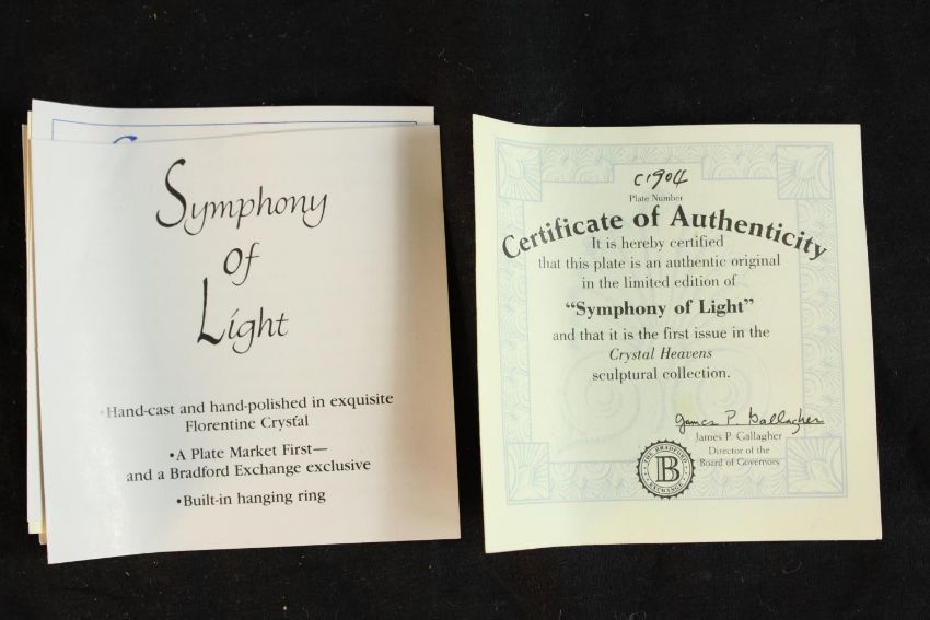 A pair of limited edition Bradford Exchange Crystal Heavens modernist sculptures, Symphony of Peace & Symphony of Light, each with certificate of authenticity. H.14 W.10 D.4cm. (each)