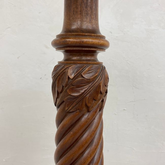 An early 20th century mahogany torchere or plant stand having a circular top over a carved twist stem raised on out-swept tripod supports on pad feet. H.144.5cm