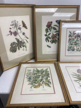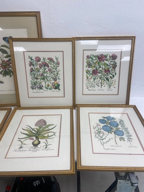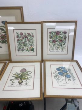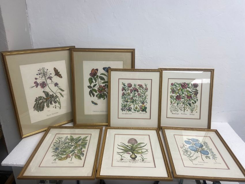 A large pair of 19th century style horticultural prints, various plants and their latin names along with a set of five similar smaller examples, framed and glazed. 65x52cm. (Largest).