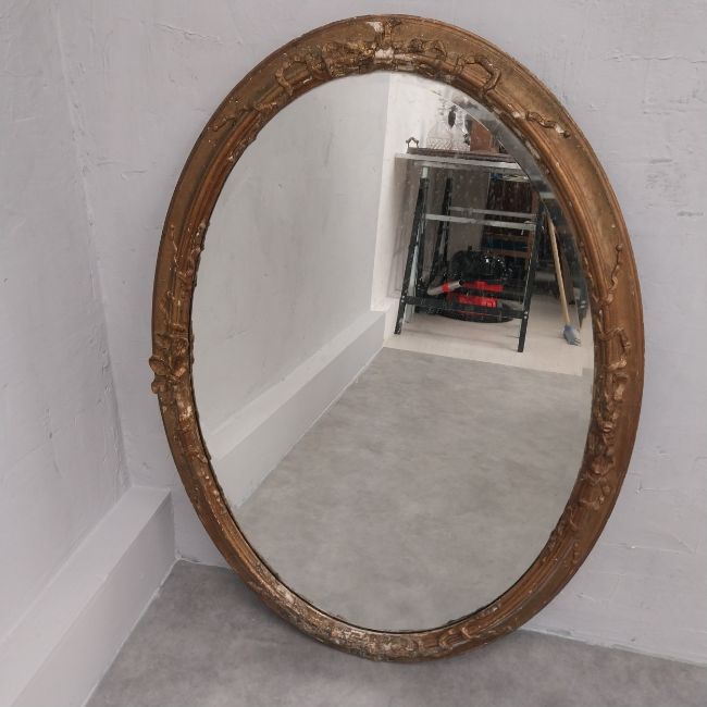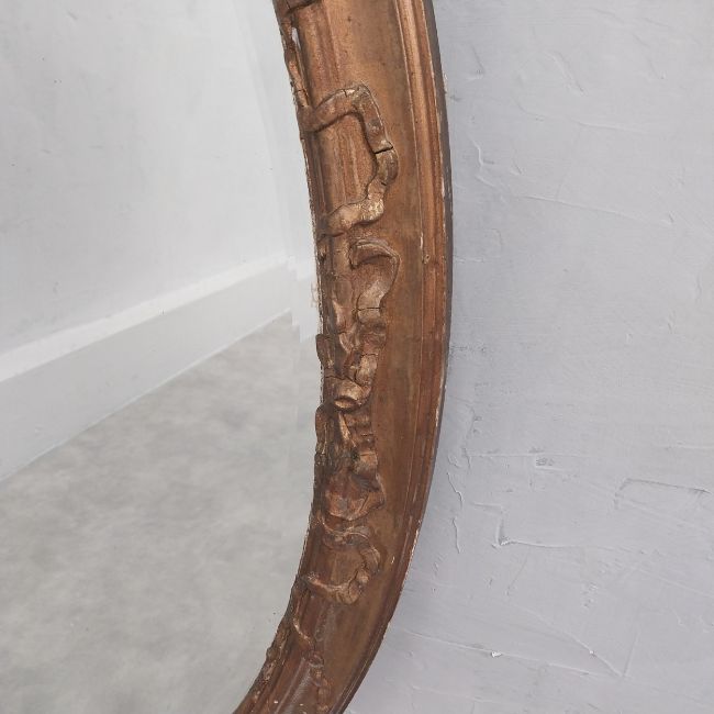 A late 19th century oval wall mirror in giltwood and foliate gesso frame. 92 x 65cm