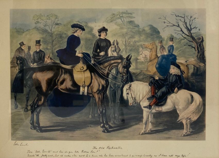 A set of four prints depicting hunt scenes after the original illustrations by John Leech. All framed and glazed. H.33 W.41cm each