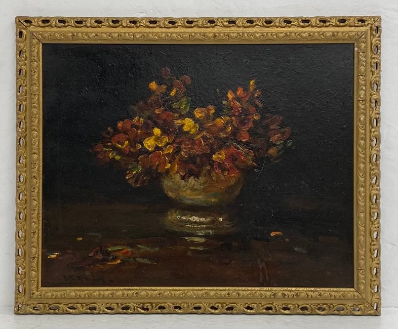 An early 20th century oil on board, still life flowers, by S. Richardson. Signed bottom left in a carved giltwood frame. H.51 W.62cm