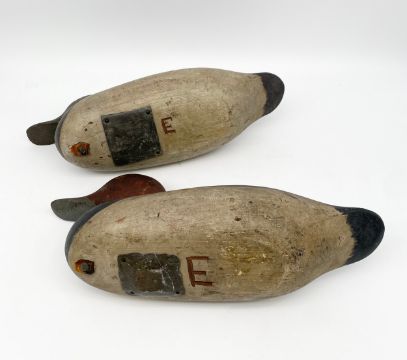 A pair of vintage hand carved and painted decoy ducks. L.35cm each