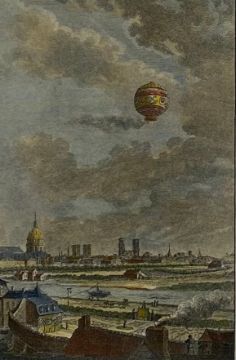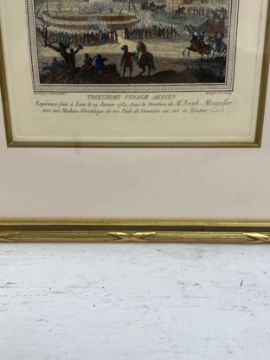A pair of French 18th century hand coloured engravings depicting early hot air balloon flights by Nicolas de Launay (1739-1792). Both framed and glazed. H.32 W.26cm