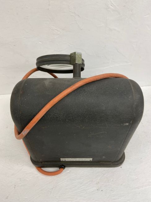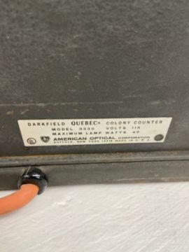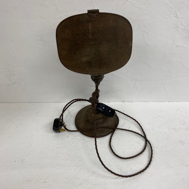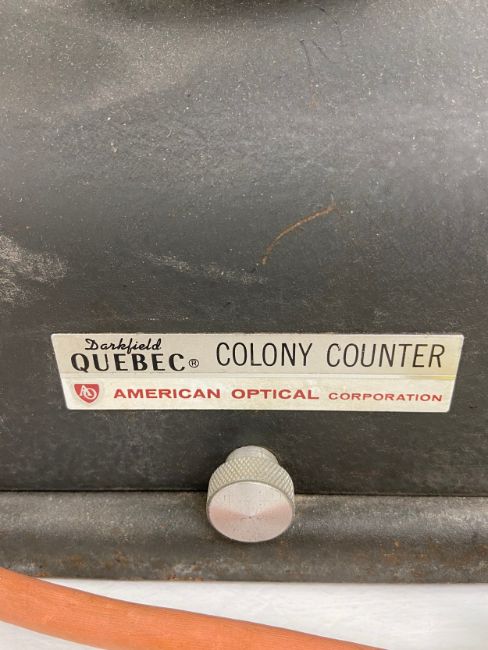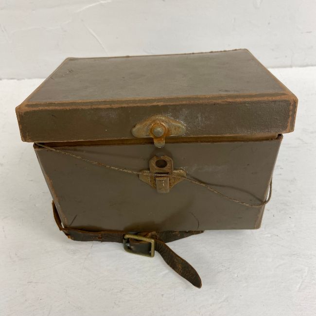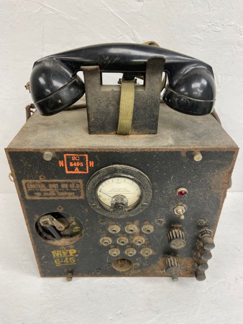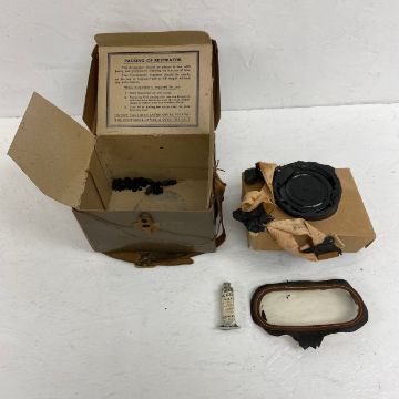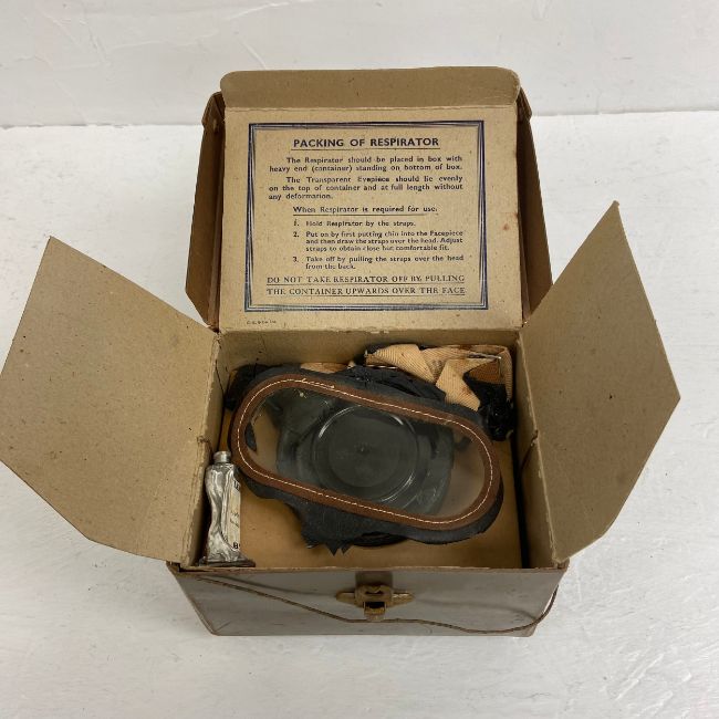 A mixed collection of military interest to include an early to mid 20th century U.S. Army Signal Corps telephone control unit, a Darkfield Quebec Colony Counter, an early 20th century Anker S. Lyhne style table lamp, a boxed British World War Two civilian-issue gas mask No.4 and others. H.52cm. (Largest).