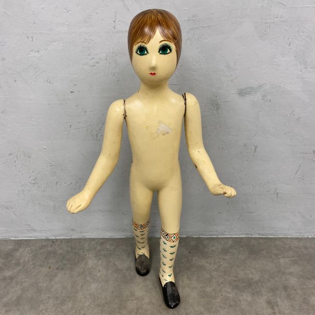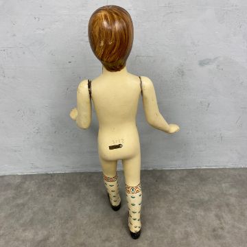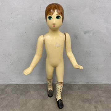 An early 20th century hand painted child's mannequin with articulated arms together with a vintage Stockman Suzette adjustable dressmakers mannequin. H.164cm. (Largest)