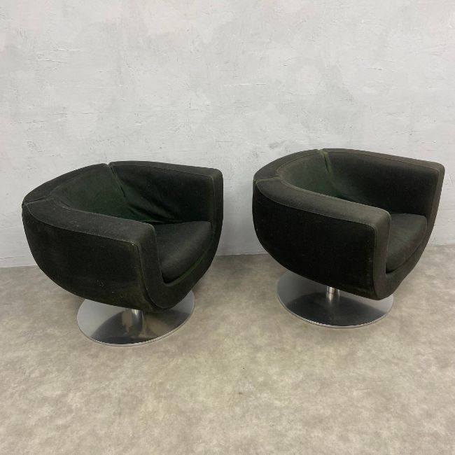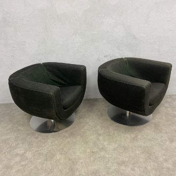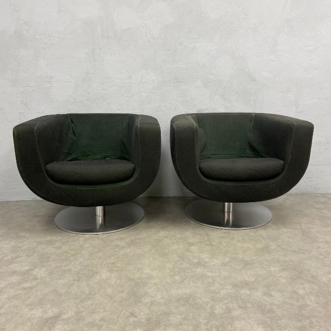 A pair of vintage early noughties Tulip swivel armchairs by Jeffrey Bernett for B&B Italia. Seat height 44cm W.78cm.