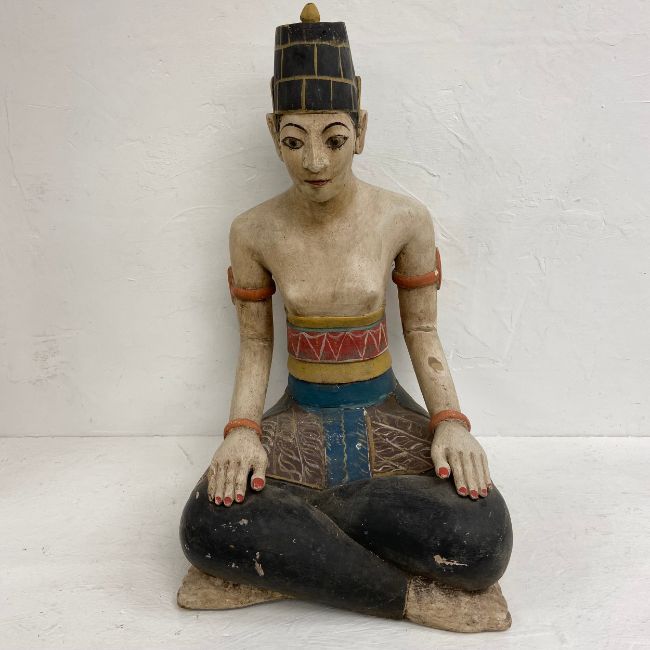 A pair of 20th century hand carved and painted Javanese matrimonial Loro Blonyo or inseparable couple figures. H.60cm.